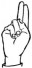 На ћирилици написано ЋИЛЕ РАДОЈЕВИЋ састоји се из 13 слова [?]. Исписано ћириличном једноручном азбуком за глувонеме: